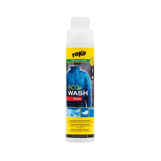 Toko Eco Down Wash is formulated to clean and loosen down or synthetic insulation while retaining its natural protective covering. Free of dyes, optical bleaches and phosphates — great for cold-weather gear & sleeping bags.